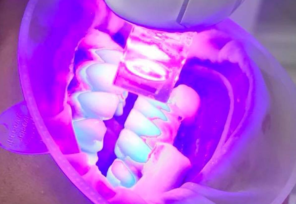 - Clareamento no consultório: Uso de ácidos aplicados pelo dentista, por isso em maiores concentrações e com resultados mais rápidos. O clareamento em consultório pode ser efetuado com o auxílio de aparelhos de foto-terapia. Laser, Led, Infravermelho e ultravioleta são algumas opções de tecnologias que auxiliam no tratamento dando rapidez e diminuindo a sensibilidade dentária.